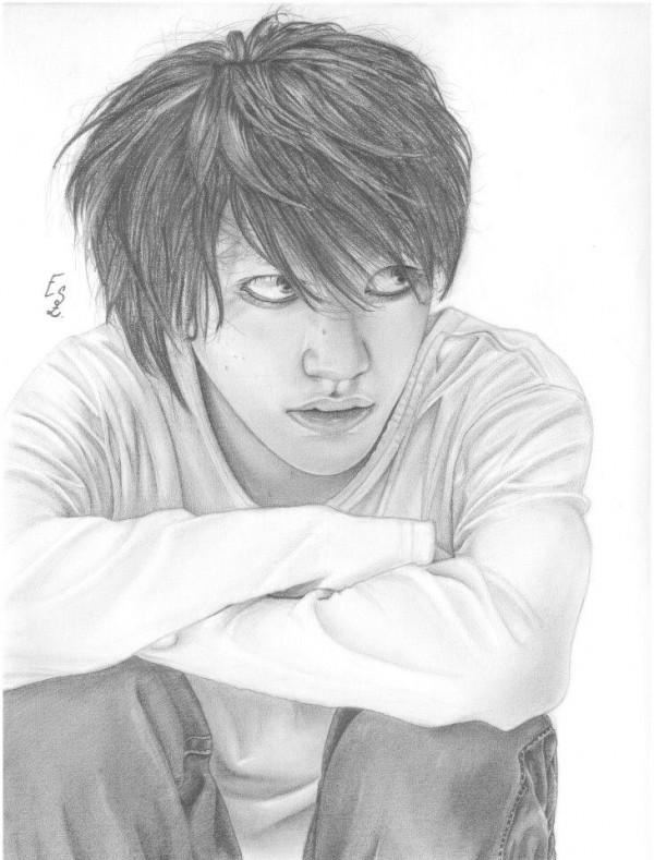 Takže, je to vlastne L. Lawliet z doramy Death Note. Je to taká japonská sranda. Túto úžasnú postavu hrá Kenichi Matsuyama, ktorého považujem za jedného z najlepších japonských hercov. A tu má taký zlatý emo look. Aj preto som sa ho rozhodla nakresliť. Ale aj bez toho - Kenichi si to zaslúži!